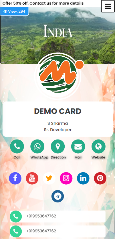 Welcome to misite.in – your ultimate destination for creating stunning and personalized digital visiting cards in just a few clicks! Whether you're a professional, entrepreneur, or freelancer, we provide an effortless and stylish way to share your contact details and make lasting impressions.